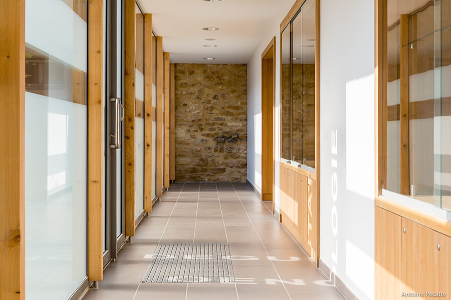 Est créée également une salle d’œnologie et dégustation avec espace de réception et prolongement extérieur.