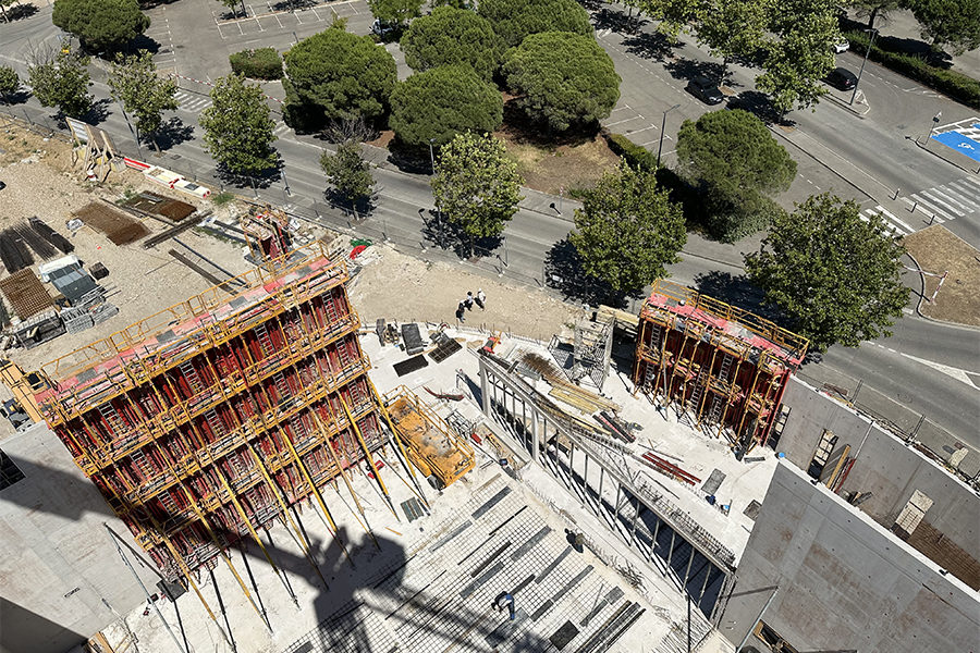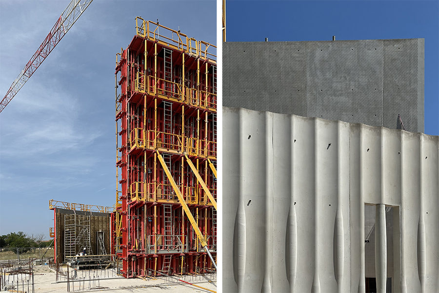 Partie centrale, voiles de grande hauteur de 12 mètres avec matrice de finition.